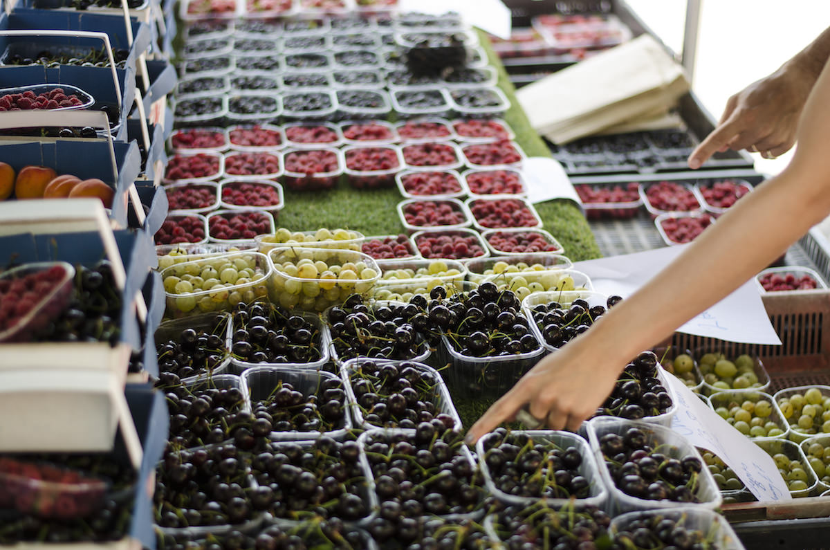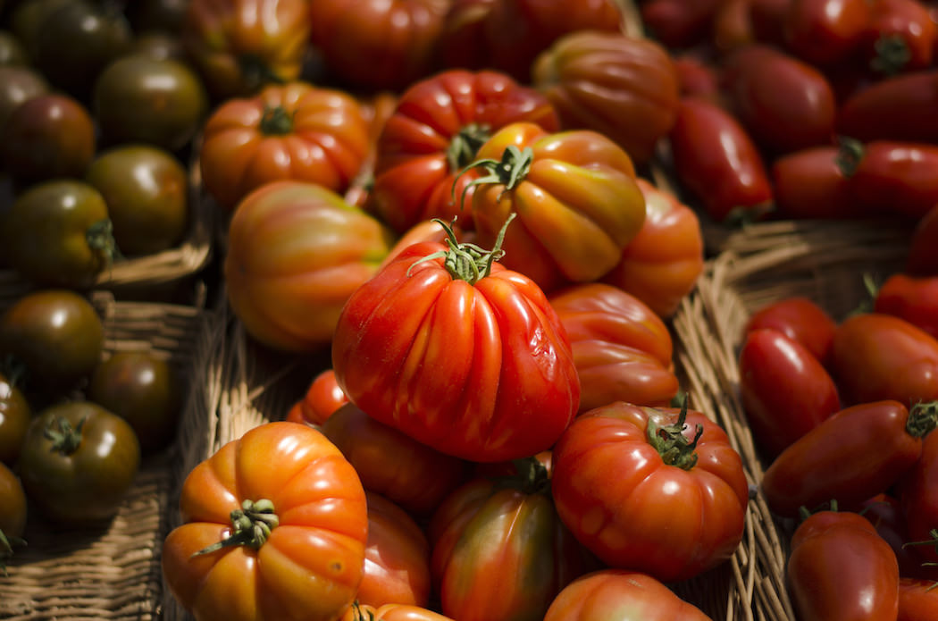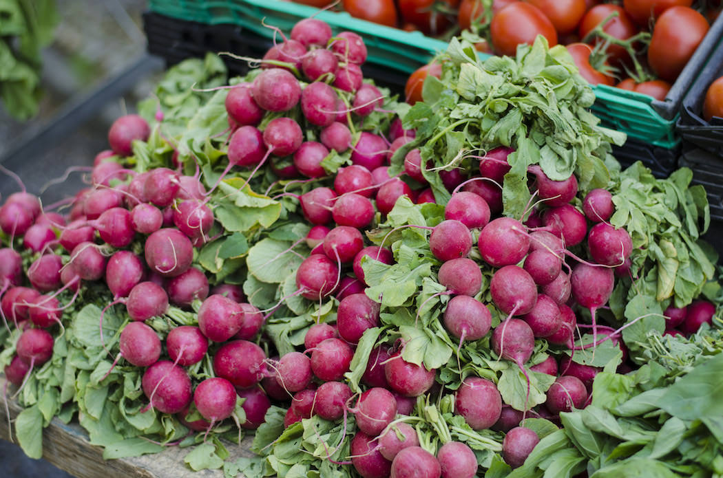 10:08am. There’s a gentle hum about the market as morning light glows on heaps of courgettes and many varieties of tomatoes. Swathes of color fill the eye – deep green spinach, here and there splashes of red, purple and gold. It’s a feast! I’m struck by a fierce temptation to devour it all.