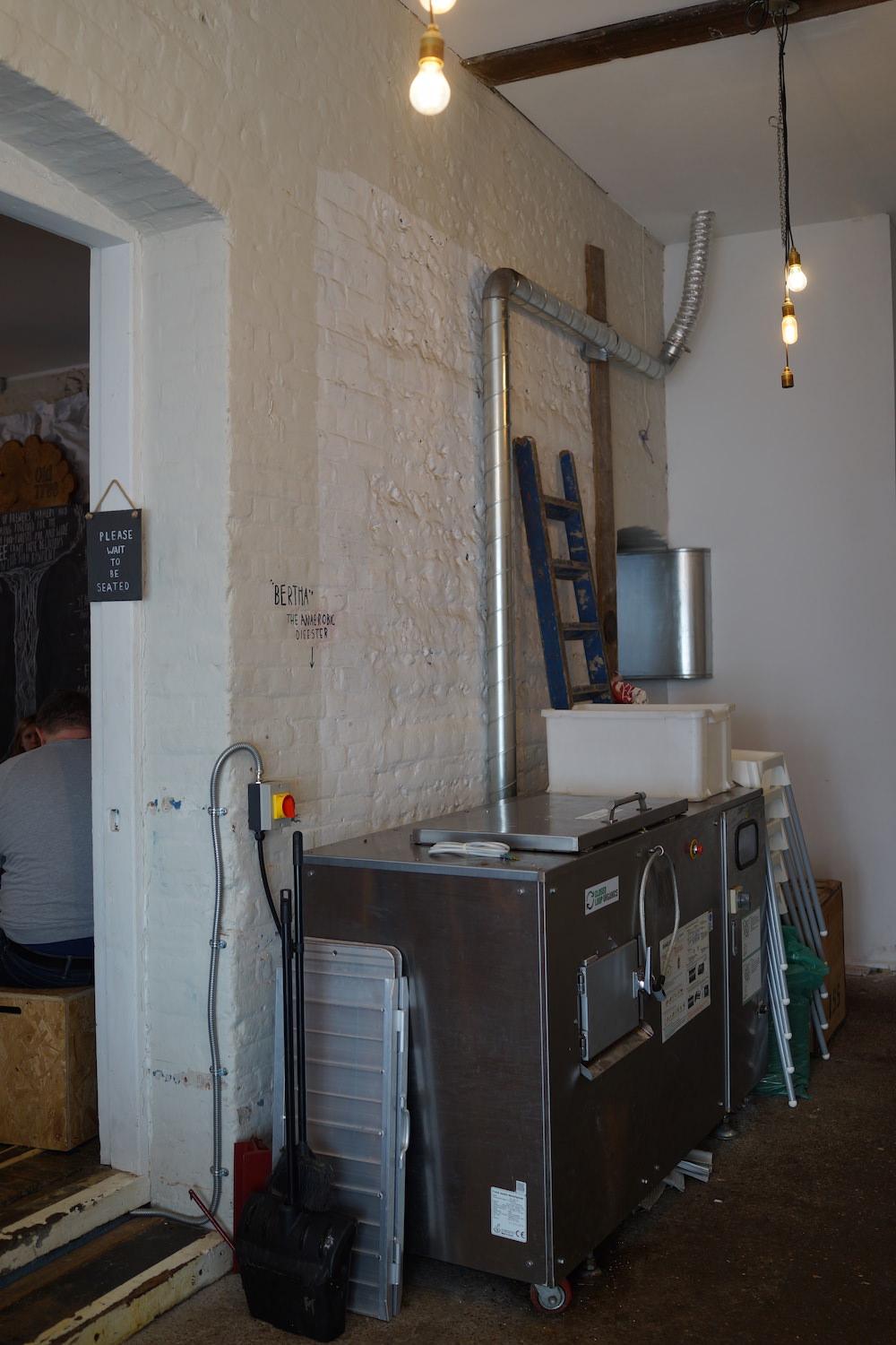 So many silly examples I can give you but one example is soap – (we’ve well as making our own soup we have electrolysed tap water (which is more hygienic than hand soup itself) which we also use to clean the entire restaurant (the floors the walls) and it’s completely natural and that’s a solution to cleaning products. We make our own candles from waste fryer oil in jam jars. With coffee, it has to be in pressurised air-tight container – so we have this thing called the coffee vac – which has a vacuum pump and is an airtight container. What that means is we have a solution to packaging as all the foil that wrapped around the coffee we use is incredibly non biodegradable, incredible polluting.