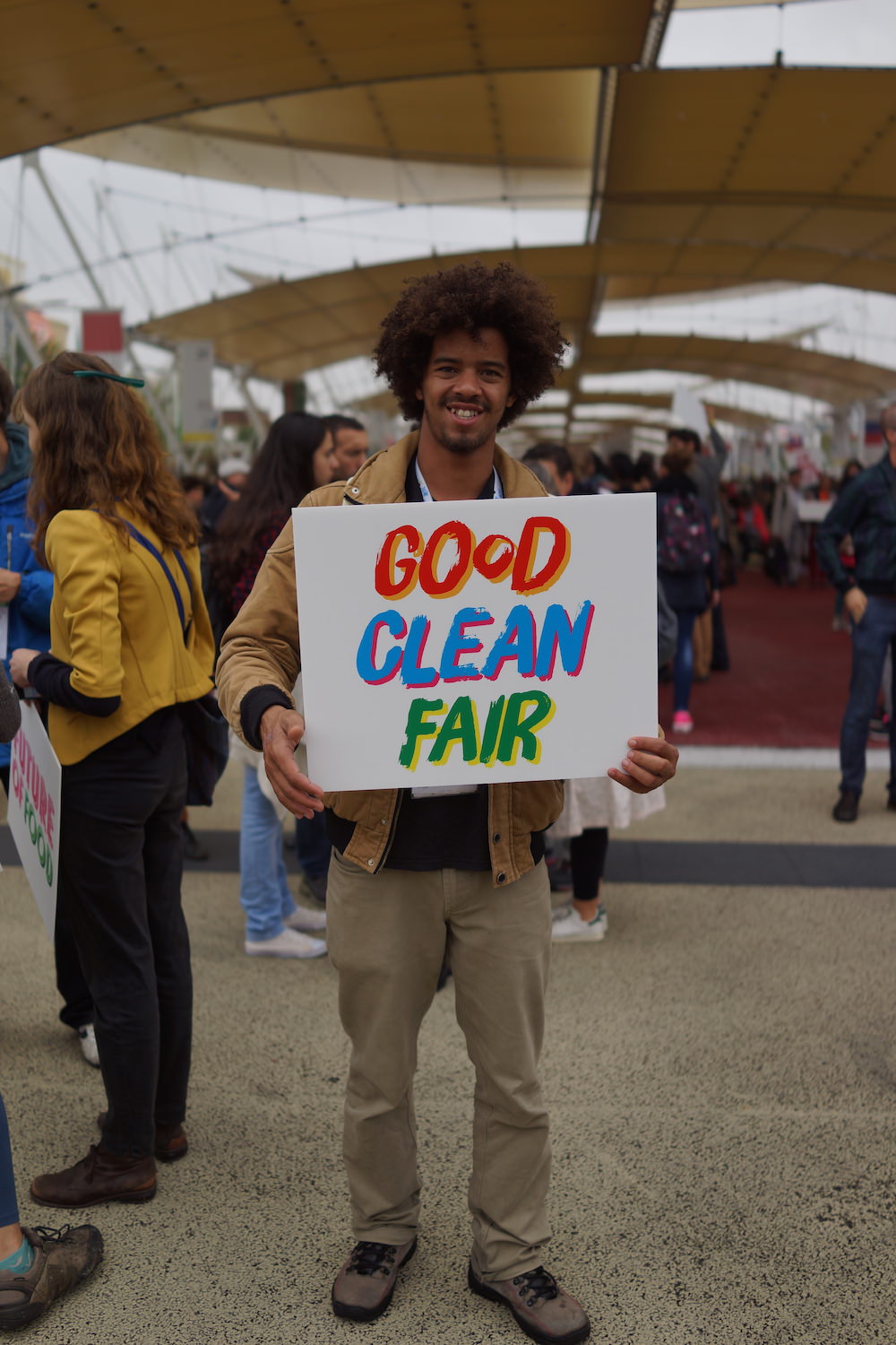 The final day held at the Food Expo – a huge purpose built business park on the outskirts of the city hosting pavilions from all over the world. All 2,500 farmers descended on Expo – we were addressed by a series of speakers, from young farmers and activists presenting the so-called Mansholt letter to world leaders, the Italian Agriculture minister and the Foreign Affairs minster talking about the importance of sustainable agriculture and a final rousing speech from Carlo Petrini – before marching through Expo with our placards to the Slow Food pavilion.