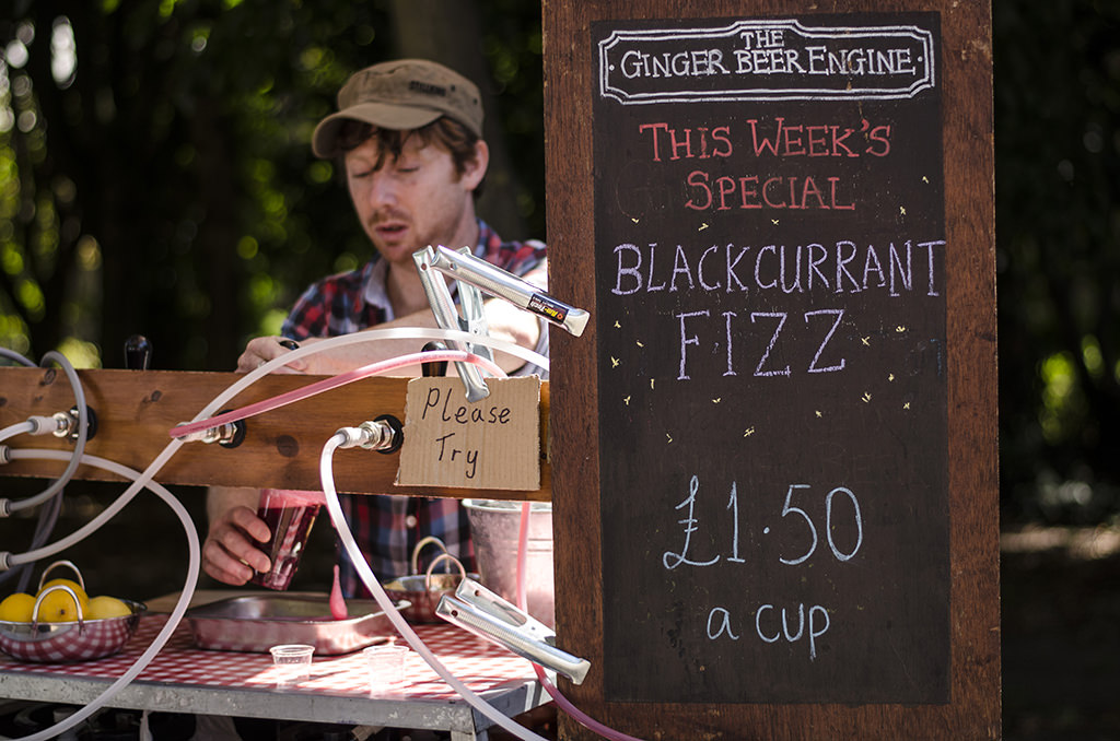 Alexandra Palace market caters an unusual range of products. Some of which are bloody fantastic. We have Tom of Thempation hawking hemp based products. Ranging from flavorsome pesto to delectable brownies. Hemp’s had a bad wrap for years being the prodigny of the Cannabis plant. But we seem to be getting past all that now, and recognising, as Thomas Jefferson did, that hemp has properties that make it nutrient rich and a versatile and strong textile too. Thempation brownies are a rich and delicious treat, packed with flavour. At £2.50 for a block, their the sort of price you’d pay in a cafe for a regular brownie. Next up Gareth of the Ginger Beer Engine. A remarkable piece of kit invented by Gareth. The Ginger Beer Engine pumps out sweet sparkling beverages. Gareth makes these drinks by hand and uses a traditional Ginger beer plant. All his berries and ginger are fresh, making these homemade treats compelling to drink. Ginger beer, blackcurrant fizz and lemonade. Each is an exciting and refreshing flavour. Gareth’s concienctious too. Using just the right volume of sugar. So his drinks are flavoursome but they won’t bust your arteries.