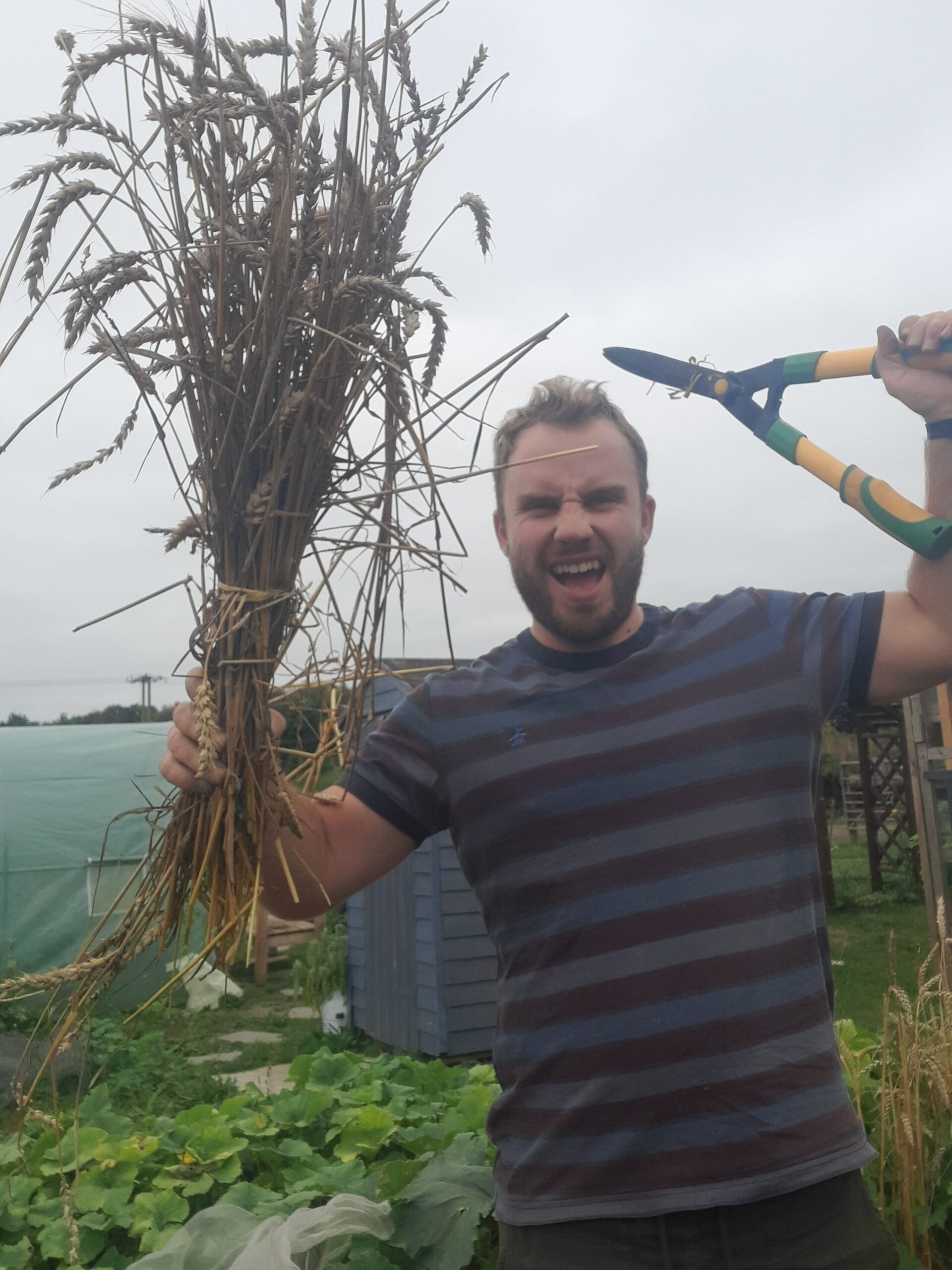 Off the back of this course, I have spent the last two years cultivating a genetically unique YQ wheat population on the allotment behind my house (much to the amusement of the allotment committee). This autumn, I had my first proper harvest and was able to process and mill enough flour for three (totally worth waiting nine months..) 500g loaves of Exning YQ population bread. Things have got a bit out of hand and having taken on the allotment plot next door, I should have enough growing space for 30 loaves.
