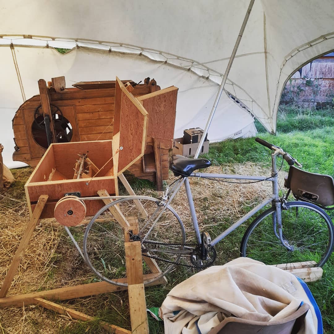 After hand harvesting with scythes, the grain went into Helen and Nick’s incredible homemade bike powered threshing machine (this has to be seen to be believed) to separate the grain from the straw, followed by an antique Victorian winnowing machine (from a local auction) to get rid of the chaff. Then it was into the tabletop mill, to be turned into flour. Having never baked with freshly milled flour, I was blown away by the intensity of the flavour and the speed of the baking process. The fact that this was growing in the field about 40 minutes earlier, made it even better.