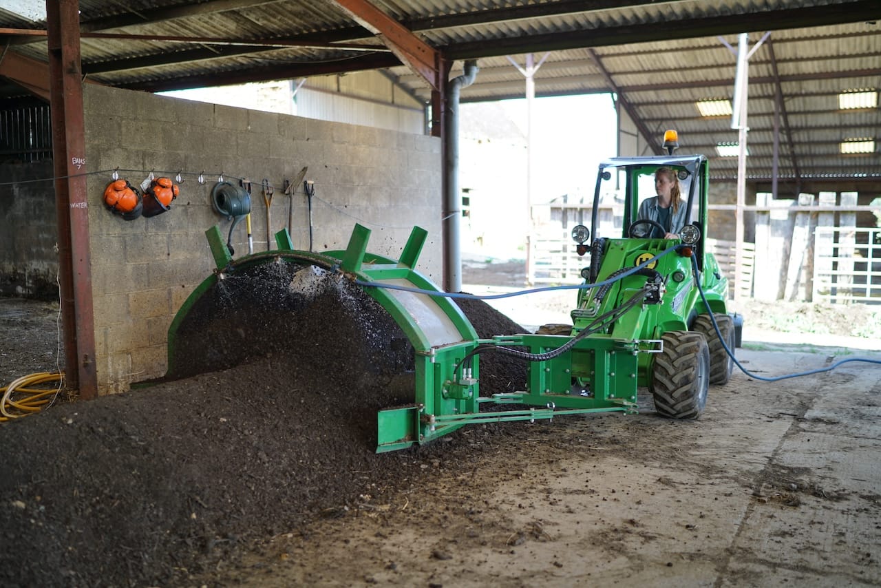 More recently they have invested around £12,000 to buy a Swiss made Gujer Compost Turner (TG 201) designed to fit compact loaders from 30hp.