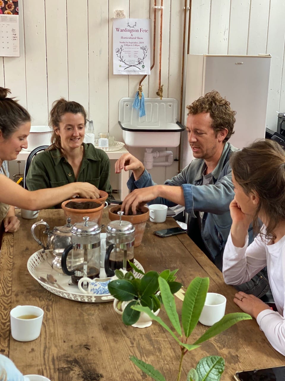 Bridget and Henrietta work from Bridget’s home, Wardington Manor, in Oxfordshire, where they design productive gardens, specialising in restoring old walled gardens, growing organic cut flowers and making microbially rich aerobic compost.